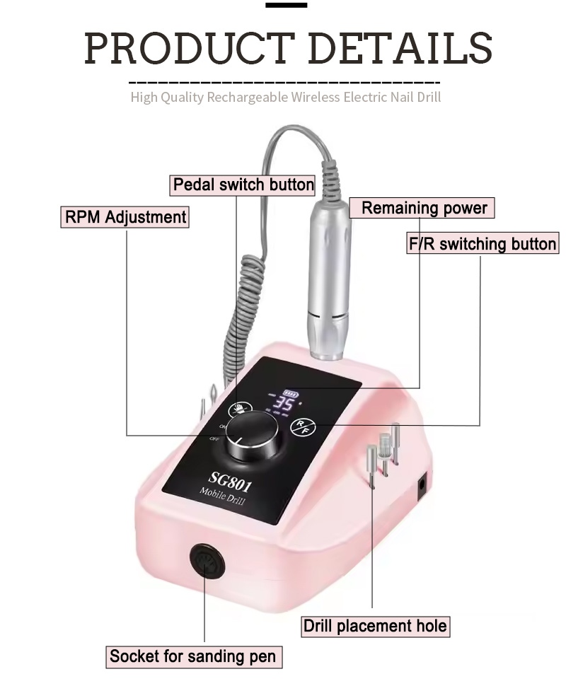 Ẹya Ati Ohun elo ti 35,000 RPM Electric Portable Gel àlàfo Drill