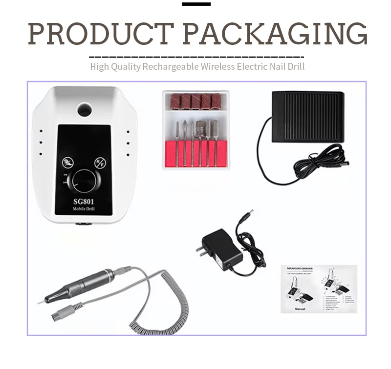 Awọn akoonu ti yi 35,000 rpm ina šee šee Geli àlàfo package liluho ni o ni a sanding pen ọja, USB gbigba agbara USB, a ọja itọnisọna, ati ki o kan fẹẹrẹfẹ ati ki o gbe apoti.