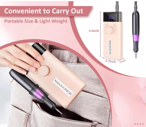 Apẹrẹ ifihan ti eekanna eekanna itanna yii 30,000 rpm ni iyipada titan / pipa ati yiyi siwaju / yiyi pada fun apapọ ti bọtini kan ti a ti mu ṣiṣẹ, iho gbigba agbara ni iyara ni isalẹ, ibọsẹ lilu ti o rọpo ni oke, ati iyara adijositabulu ipo mẹta lati pade ọpọlọpọ awọn iwulo.