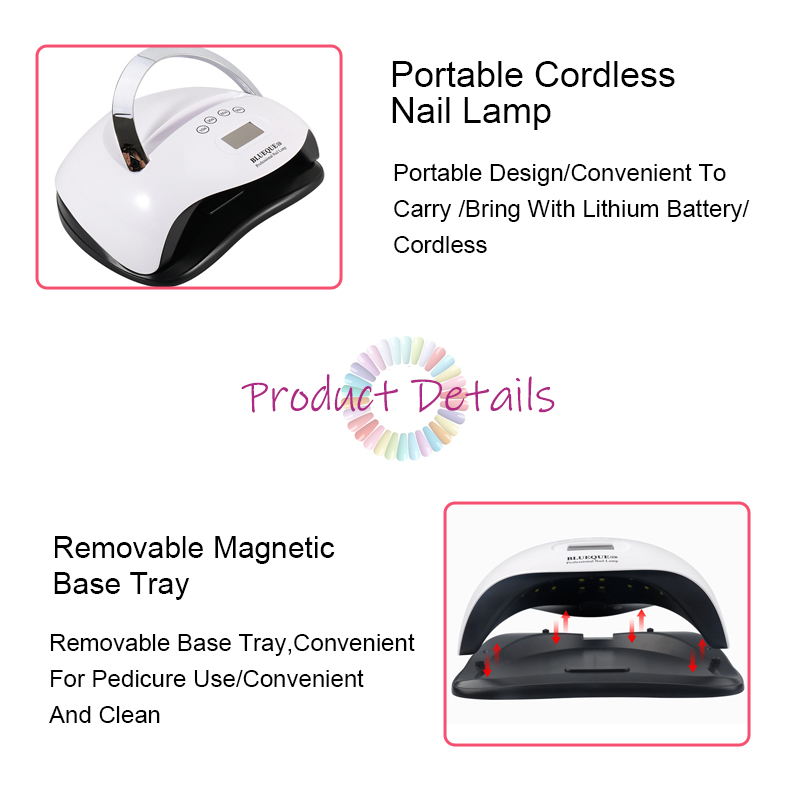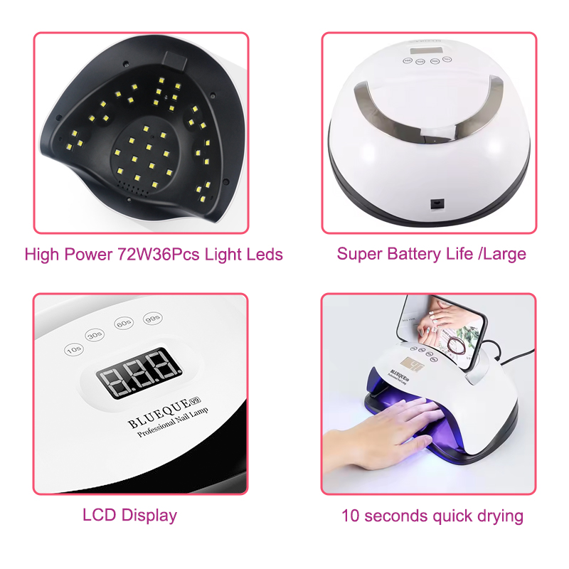 Atupa eekanna didara to gaju pẹlu iṣẹ aago ṣe idaniloju paapaa gbigbẹ lẹ pọ laisi isunki. Awọn orisun ina meji rẹ pese alapapo onírẹlẹ lati ṣe idiwọ iyipada ọwọ ati igara oju, o dara fun ọwọ ati ẹsẹ mejeeji, jiṣẹ awọn abajade gbigbẹ iyara ti iyalẹnu.