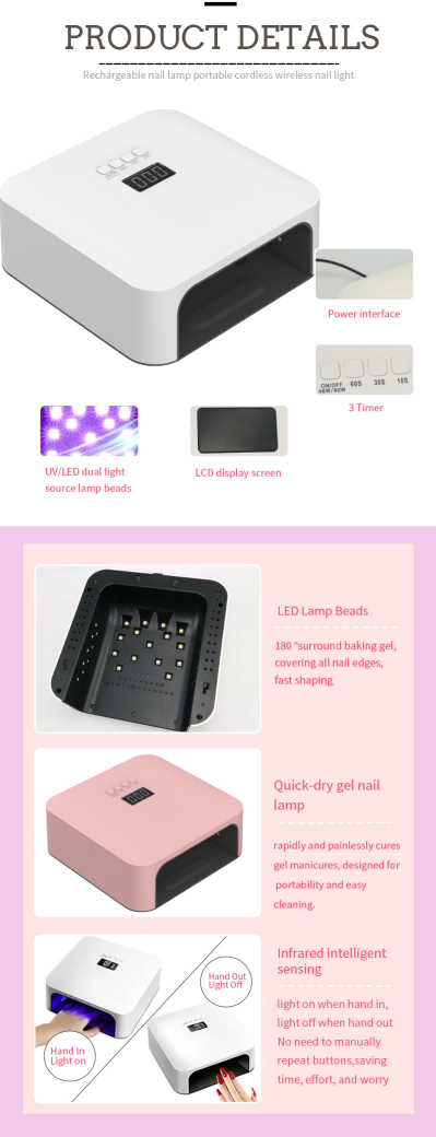 Shenzhen Ruina Optoelectronics Co., Ltd., gẹgẹbi olupilẹṣẹ asiwaju China, olupese, ati atajasita ti atupa gbigbẹ eekanna ti o ni agbara giga, nigbagbogbo ṣe atilẹyin imoye ti ilepa didara pipe. Ifaramo yii ti gba atupa gbigbẹ eekanna iyara wa ti o ni igbẹkẹle ti awọn alabara lọpọlọpọ. Apẹrẹ ti o tayọ, awọn ohun elo aise ti Ere, iṣẹ iyalẹnu, ati idiyele ifigagbaga pupọ — iwọnyi jẹ deede ohun ti gbogbo alabara nireti, ati ohun ti a fi jiṣẹ. Nitoribẹẹ, okeerẹ iṣẹ-tita lẹhin-tita jẹ bakanna ko ṣe pataki.