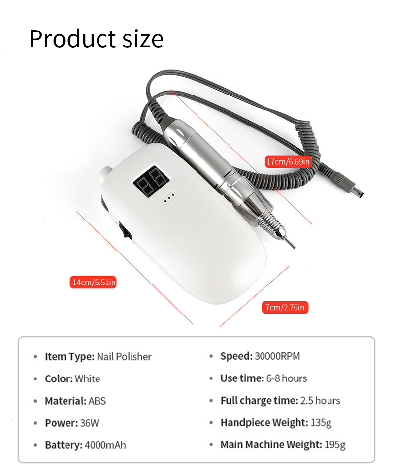 Ṣeto Eekanna Eekanna Gbigbe Ṣeto Ina Pẹlu Alagbara Motor 65w 35000rpm