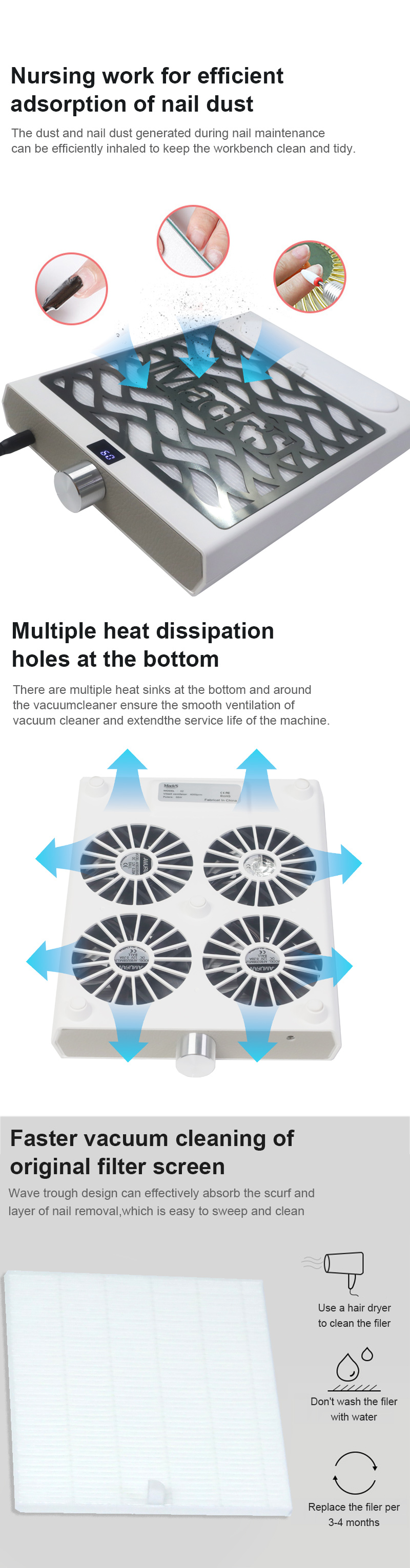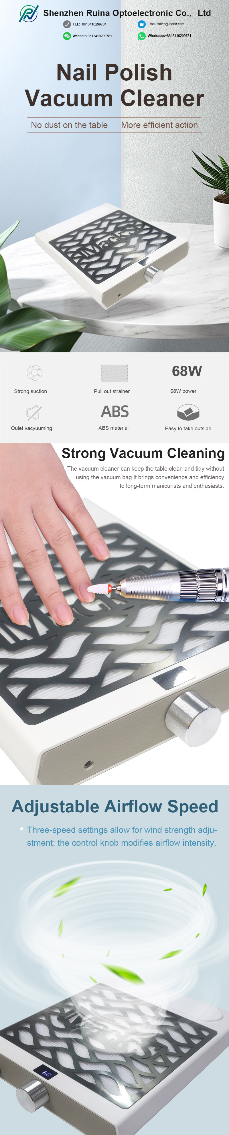 Awọn ọja ti o lagbara ikojọpọ ti eekanna idoti ko ni eruku, tọju countertop mọ ati mimọ, igbaru iyara ko ni jo agbara aisun daradara daradara.