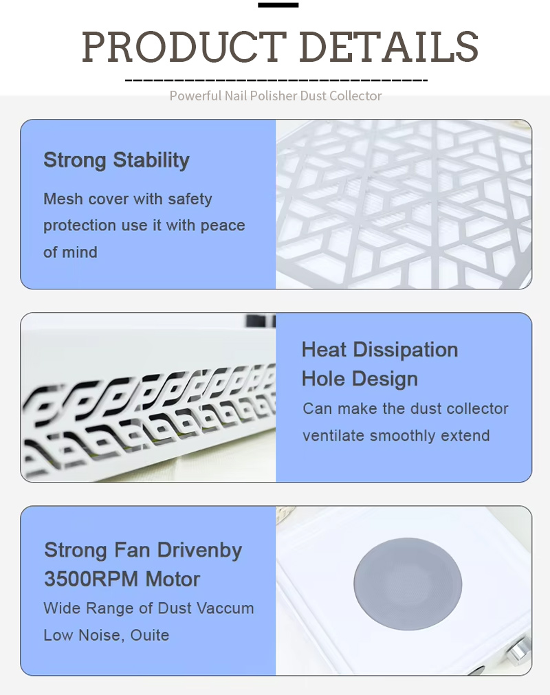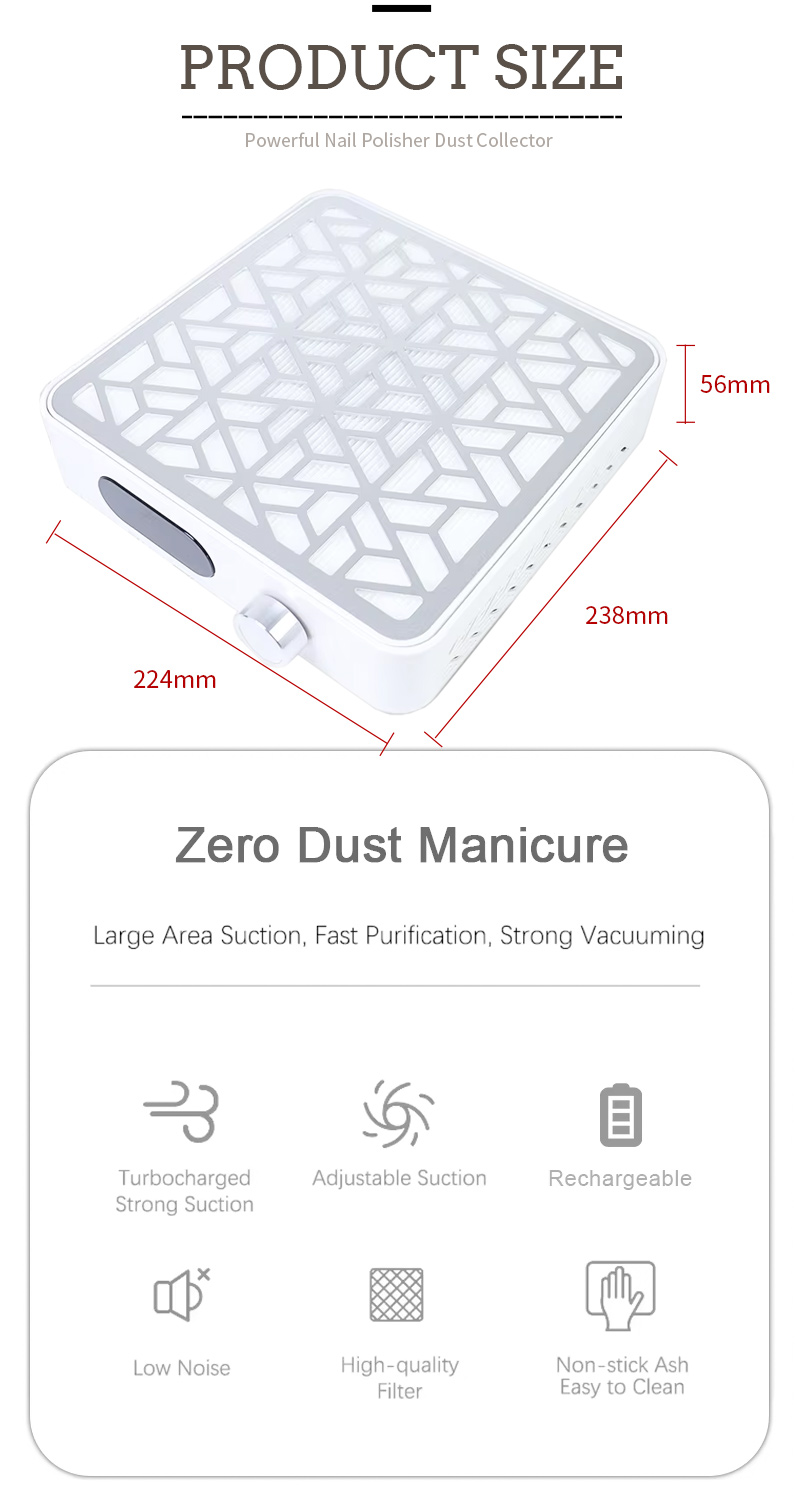 Awọn ọja ti o lagbara ikojọpọ ti eekanna idoti ko ni eruku, tọju countertop mọ ati mimọ, igbaru iyara ko ni jo agbara aisun daradara daradara.