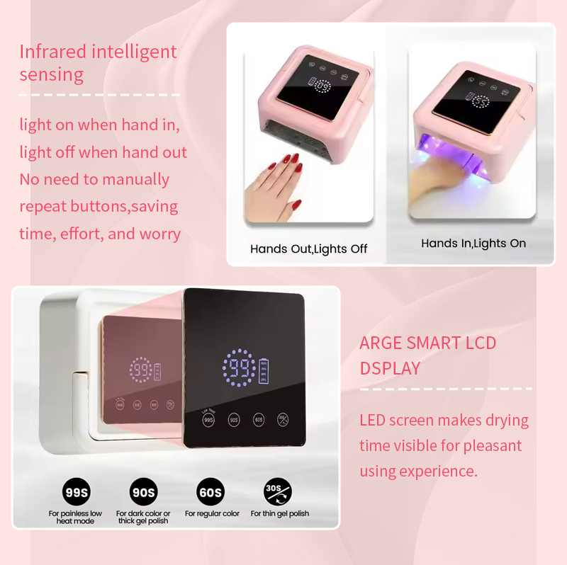 한국어Gẹgẹbi olupilẹṣẹ ọjọgbọn, a ni inudidun lati funni ni adani Titun Gel Nail Polish Quick-Gbẹ atupa. A pese Ere lẹhin-tita iṣẹ ati rii daju ifijiṣẹ akoko. Ọja yii ṣe ẹya imọ-ẹrọ ina pupa ti o ni oye ti o jẹ onírẹlẹ lori ọwọ, gbigbe iyara iṣẹju-aaya 5, ifihan iboju ifọwọkan nla, ati atilẹyin awọn iṣẹ aago. Pẹlu awọn iṣakoso bọtini ogbon ati itọsọna iṣẹ ṣiṣe okeerẹ, paapaa awọn olubere pipe le lo lainidi.