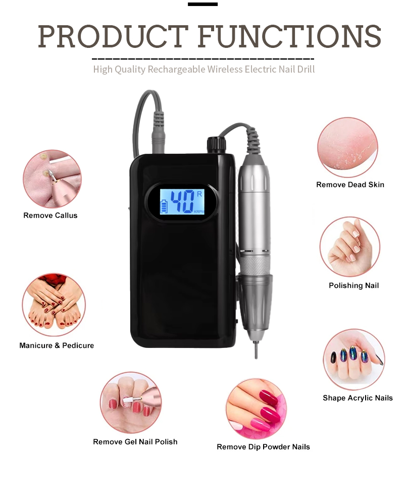 Ṣeto Eekanna Eekanna Gbigbe Ṣeto Ina Pẹlu Alagbara Motor 65w 35000rpm