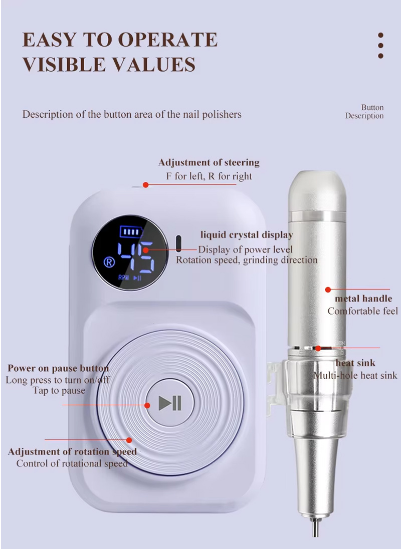 Ina Liluho Eekanna Ko Rọrun Lati Bibajẹ Afọwọṣe 65w 35000rpm