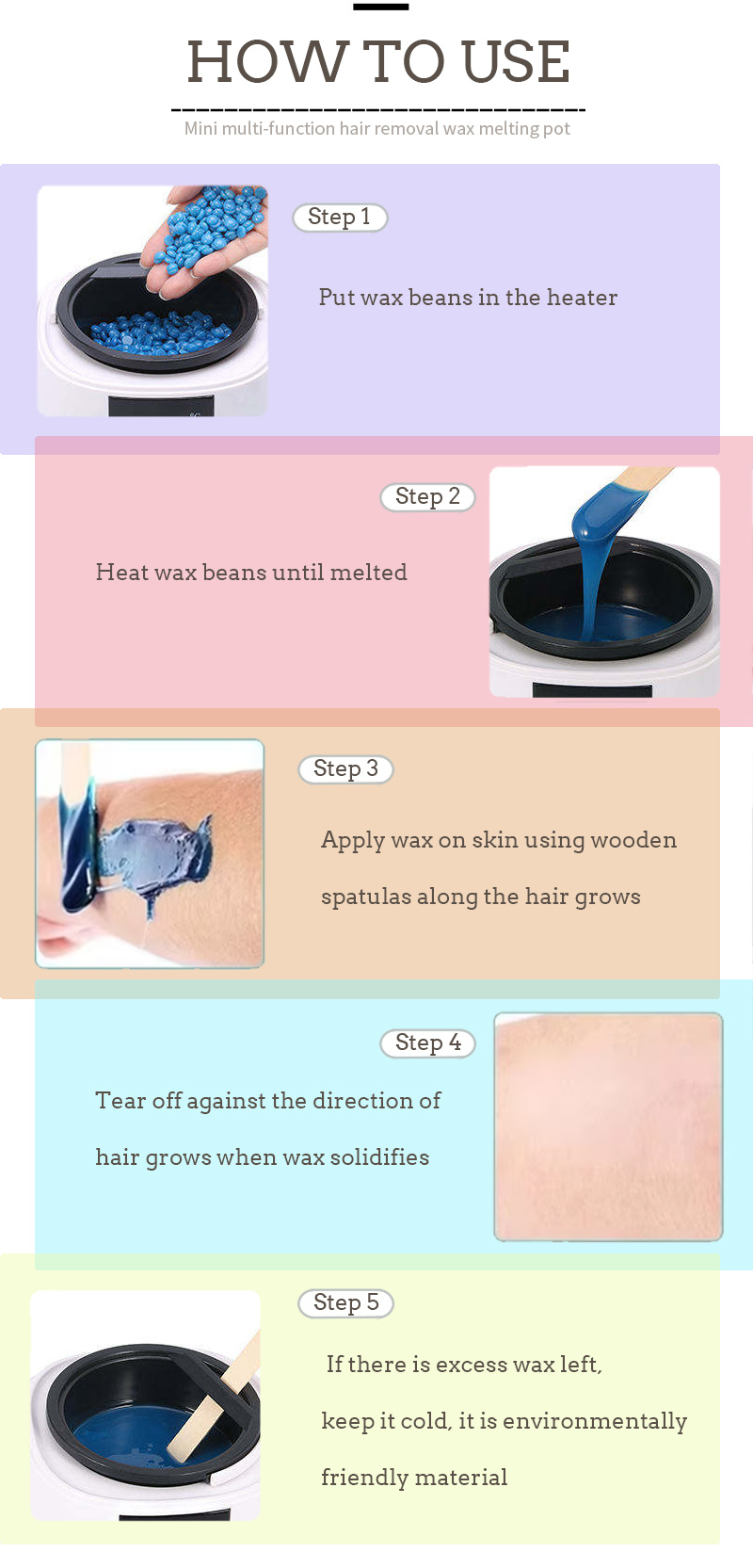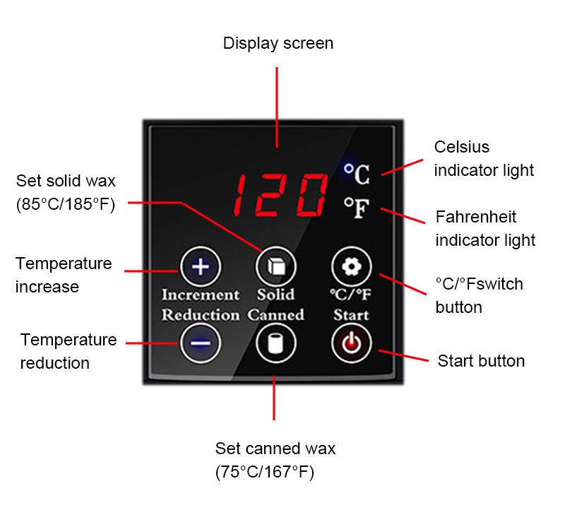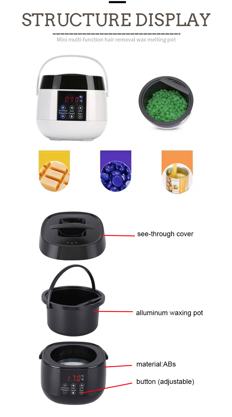 Ẹrọ epo-eti o kun awọn ohun mimu alapapo lati ṣe ina igbona, ati awọn ewa epo-eti 100g nikan nilo iṣẹju mẹwa lati yo.